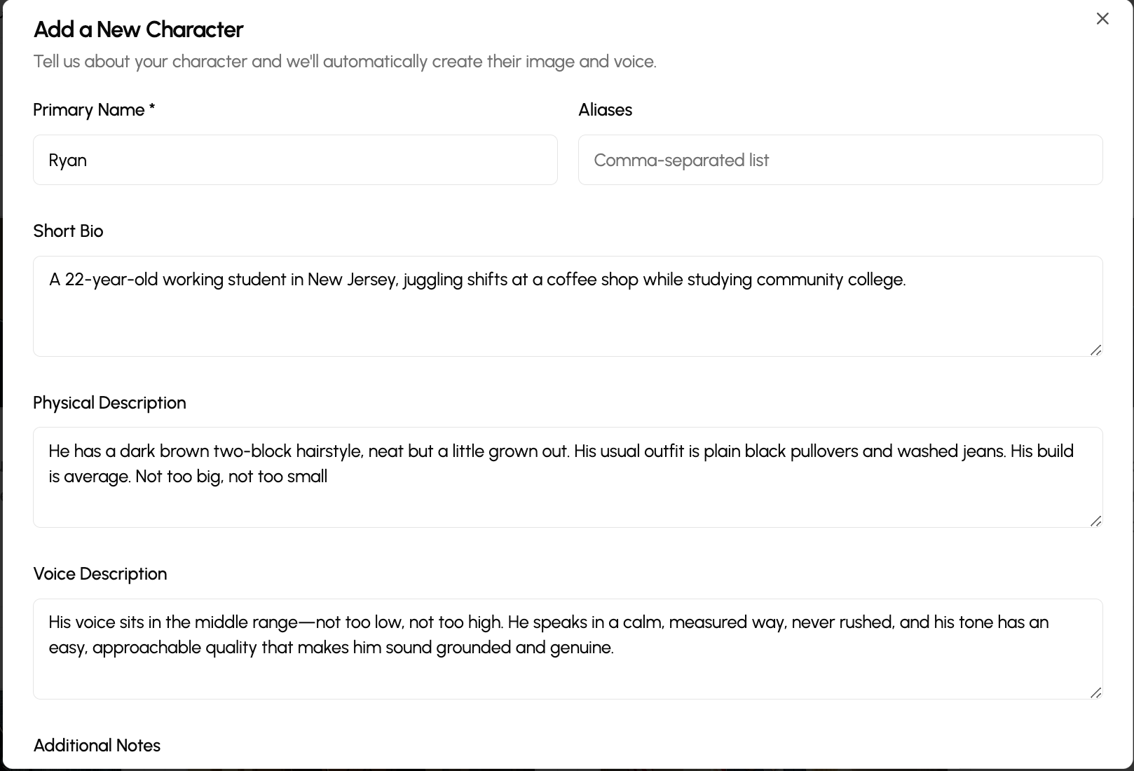 - Be specific and detailed (age, hair, clothing, voice, etc.) so the AI generates something close to what you envision.