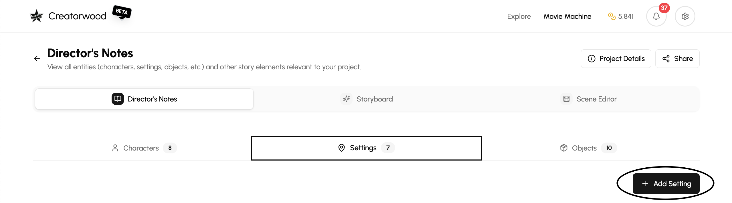 - Under Director’s Notes, you’ll find the Settings section. Click on Add Setting.