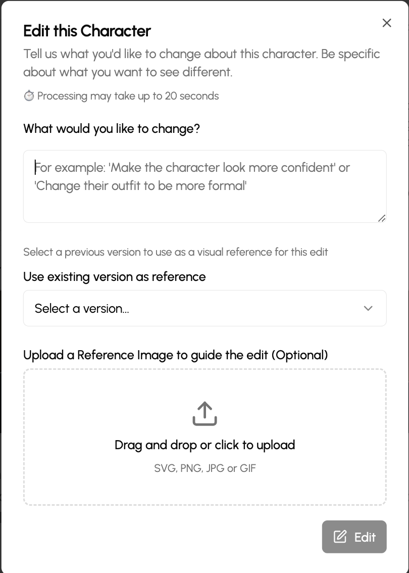 Choosing Edit allows you to make minor adjustments to the current version, such as changing the hair color, skin tone, or other small visual details.
