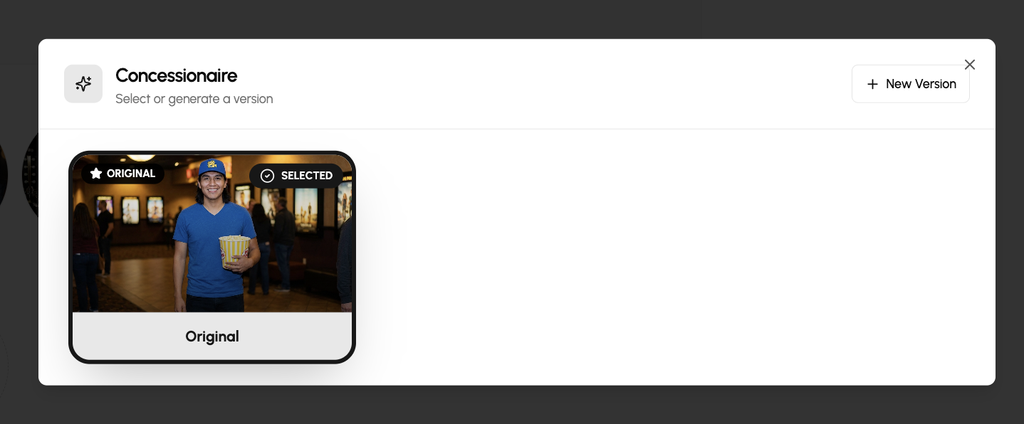 - Then, select the version of the character that you want applied to the shot. The version is the one that will be used to generate the start frame.