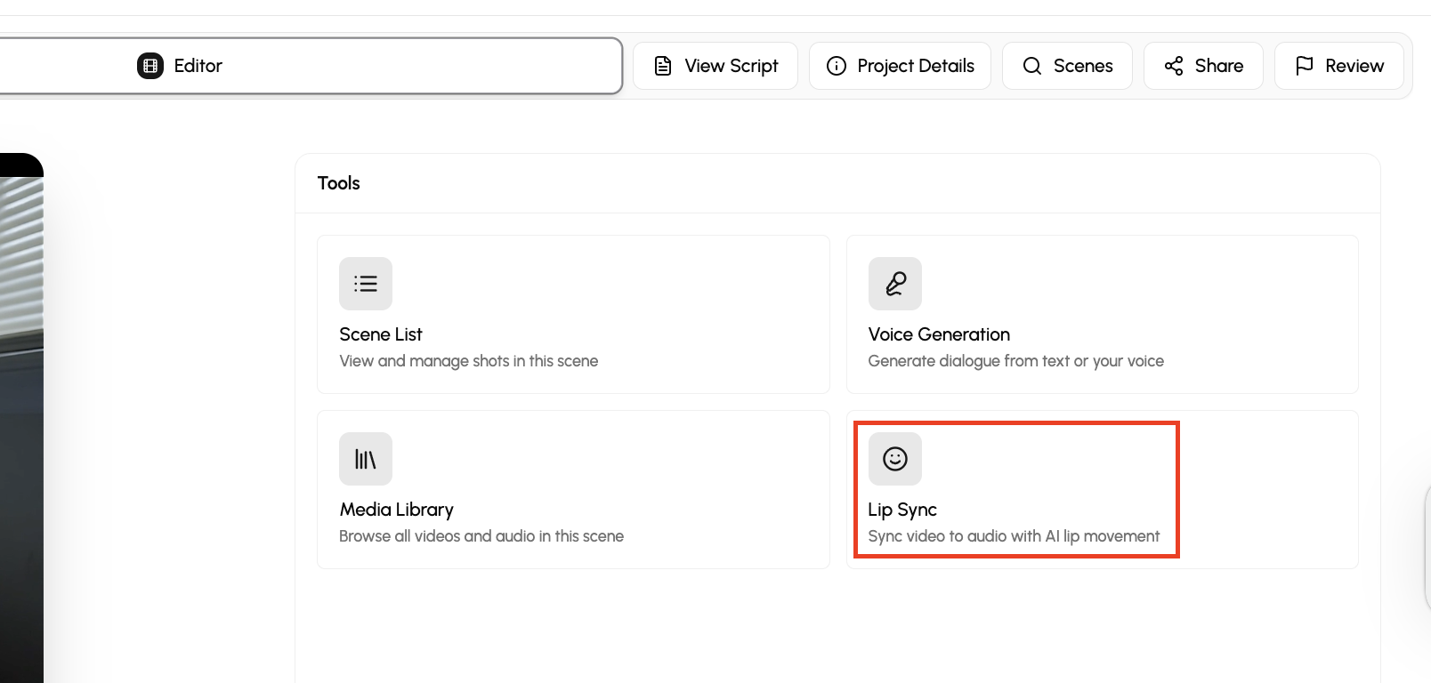 Lip sync is handled per shot, giving you precise control over dialogue accuracy.