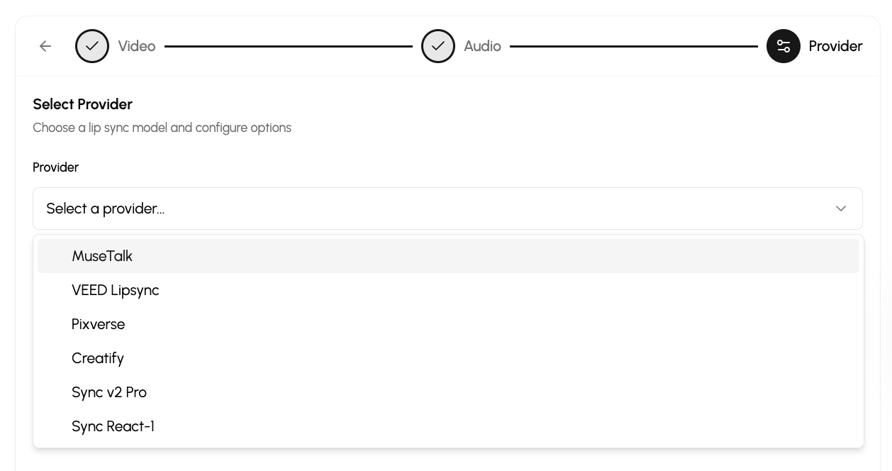 - Sync v2 Pro – High-accuracy, production-grade lip sync with strong timing alignment and natural mouth movement. Best for final renders.