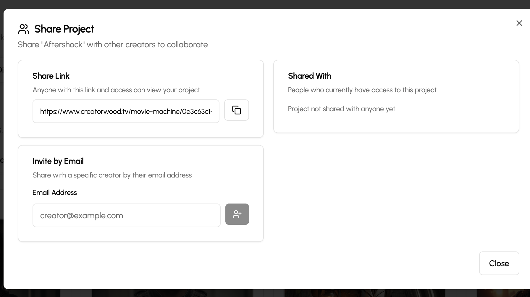You can share your projects on the Movie Machine with collaborators so that BEFORE you publish your movies and shows you can get help from fellow storytellers, professionals, and even get early feedback from viewers.